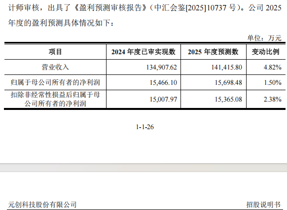 招股说明书显示,元创股份预计2025年全年的营业收入为14.14亿元,同比增长4.82%;归母净利润为1.57亿元,同比增长1.50%。