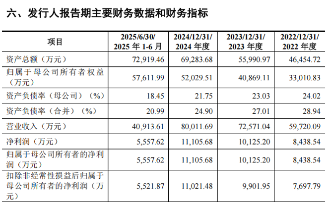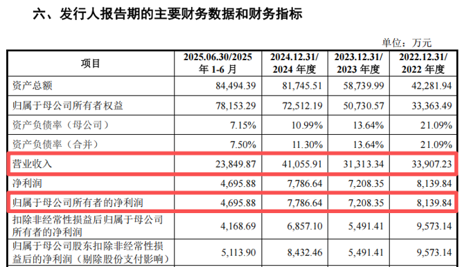 2022年至2024年及2025年上半年,优迅股份的营业收入分别为3.39亿元、3.13亿元、4.11亿元及2.38亿元,归母净利润分别为8139.84万元、7208.35万元、7786.64万元及4695.88万元。