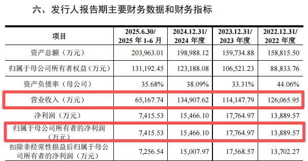 2022年至2024年及2025年上半年,天溯计量的营业收入分别为5.97亿元、7.26亿元、8.00亿元及4.09亿元,归母净利润分别为8438.54万元、1.01亿元、1.11亿元及5557.62万元。