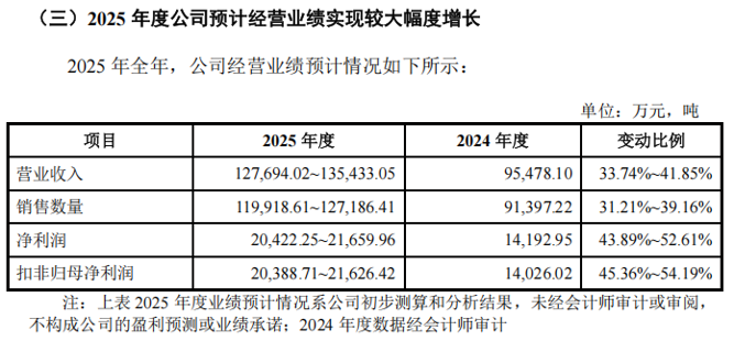 招股意向书显示,基于风电行业需求快速增长,以及锡华科技客户拓展良好与在手订单充足等因素,锡华科技预计2025年全年的营业收入为12.77亿元至13.54亿元,同比增长33.74%至41.85%;净利润为2.04亿元至2.17亿元,同比增长43.89%至52.61%。