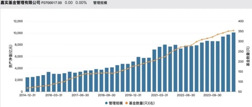 据Wind数据,截至今年三季度末,嘉实基金旗下公募基金管理总规模超过万亿元大关。其中非货基金规模达7000亿元,跃居全行业第四。